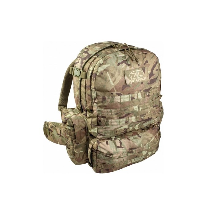 This high calibre 50L capacity load carrying bergen is all any cadet needs when tackling tough terrain. Made from high quality materials and designed for cadet use, its simplistic yet feature rich design makes it the perfect choice for cadets.The Dura-Flex material reinforces stress points for maximum durability, whilst the airflow back system allow for a comfortable experience whilst in use. The M.50 Pack comes in the new Highlander HMTC pattern and has HMTC colour-coded molle attachment points. Additional quick attachment molle points can be found underneath the rucksack for roll mats.